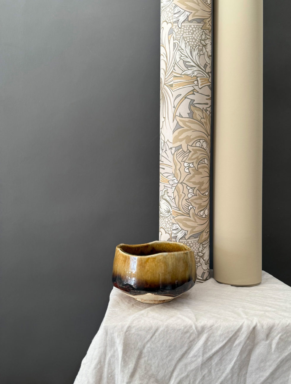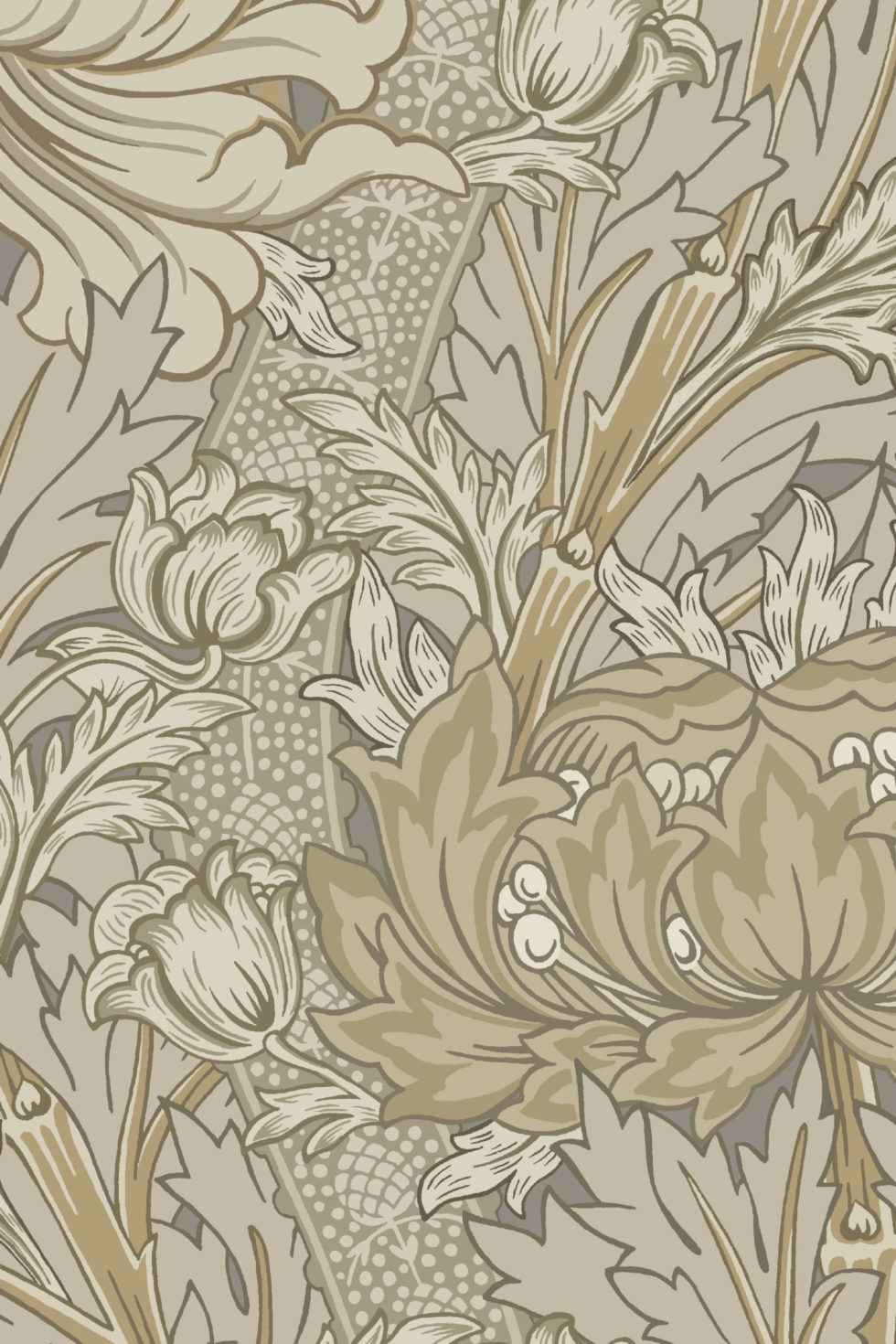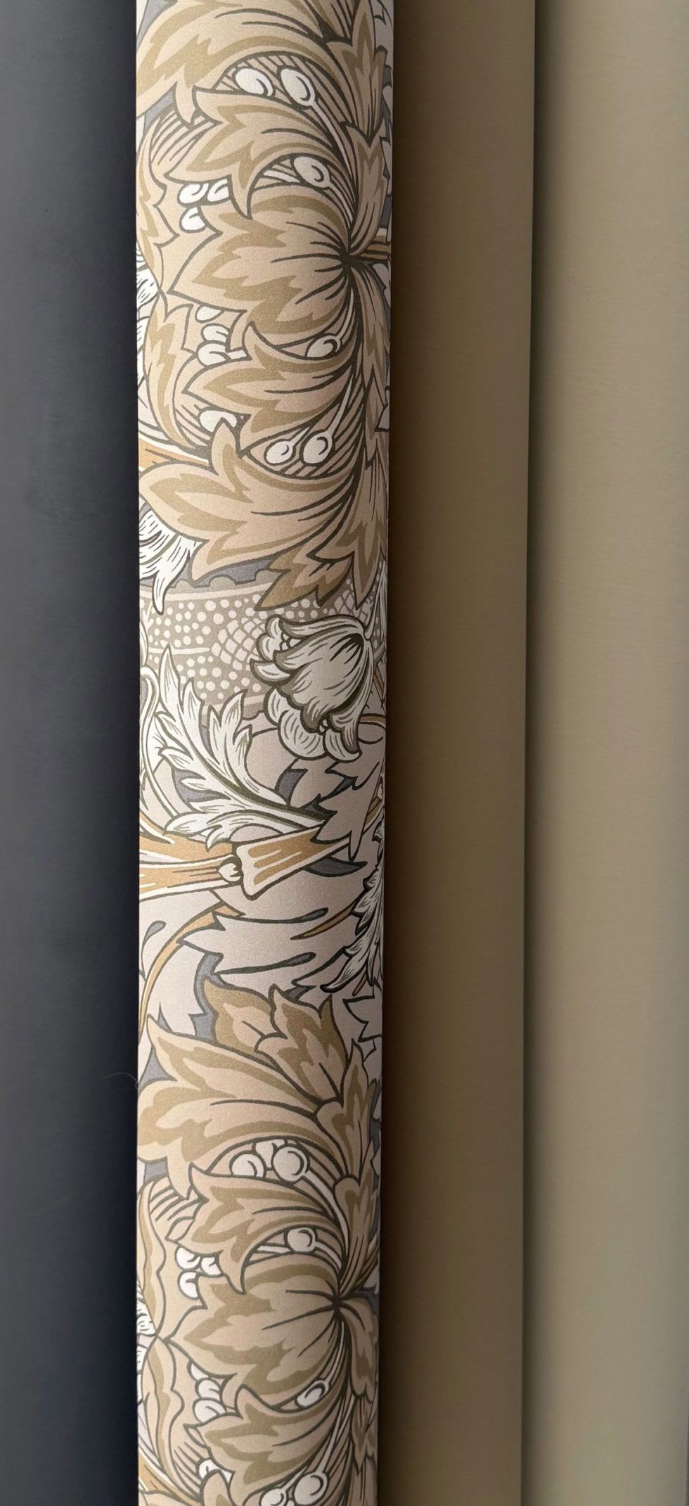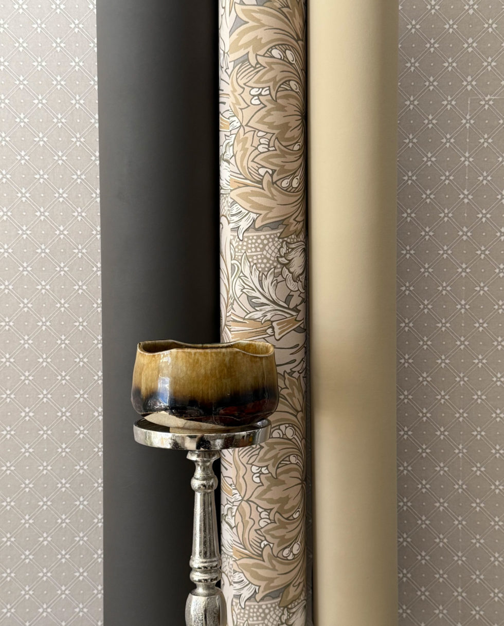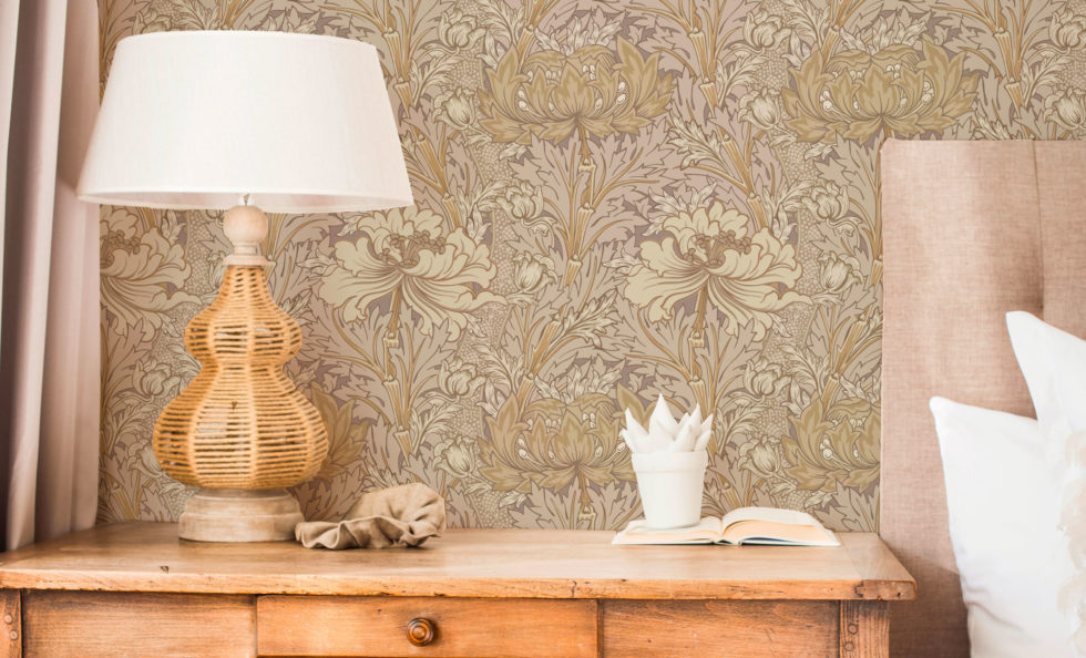 Le motif de « Chrysantemum » a une grande histoire liée aux archives de William Morris, écrivain et artiste mais surtout un des premiers producteur de papier peint utilisant la méthode industrielle de fabrication en Angleterre.